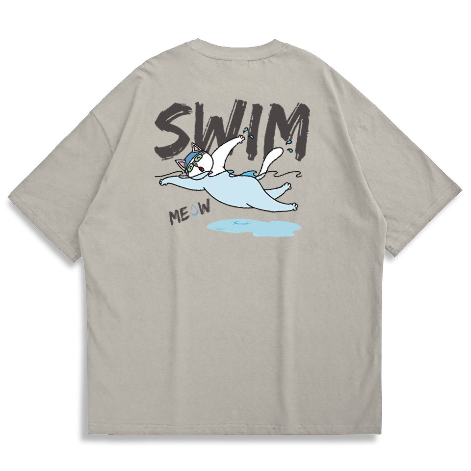 【Creeps Original】Swimming Cat Oversized Printed T-shirt